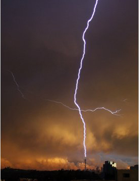 一道閃電擊中南非約翰內(nèi)斯堡市的“Hillbrow Telkom”塔。