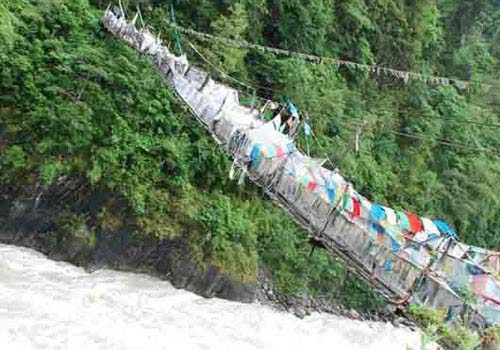 雅魯藏布圖庫大峽谷上悠久的吊橋