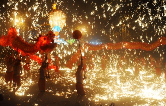 2月28日,侯祠博物館大廟會(huì)上在進(jìn)行銅梁火龍表演。新華社記者 江宏景 攝