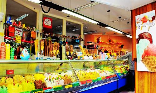 在意大利北部GARDA湖邊的SIRMIONE小鎮(zhèn)上卡到的一家冰淇淋店,長(zhǎng)長(zhǎng)的一排大冷柜里面,五顏六色的冰淇淋足有四五十種之多!
