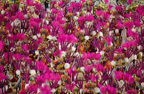 2月14日在巴西里約熱內(nèi)盧狂歡節(jié)上,舞者們在進行表演。