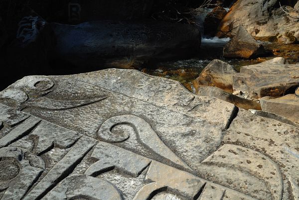 勒巴溝是佛教傳播的重要線路,而且是唐蕃古道的重要通衢。文成公主當(dāng)年駐扎在現(xiàn)在的文成公主廟的地方,而鑿石刻經(jīng)的人馬卻駐扎勒巴溝,兩地相隔二十幾公里,中間尚須翻越海拔四千多米的埡口,聯(lián)系困難和生活艱苦程度可想而知。