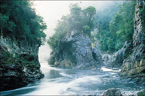 晨霧和島巖:這張圖片是彼得·托姆布洛夫斯基1983年在澳大利亞塔斯馬尼亞島西南部的富蘭克林河上拍攝的。最初曾刊登在《澳大利亞新聞報(bào)》上,被用作反對(duì)在富蘭克林河上修建大壩的廣告。