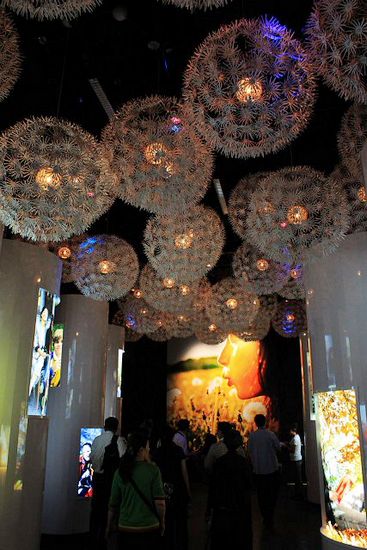 入口處,幾盞象蒲公英似的發(fā)光的燈籠,很有創(chuàng)意。