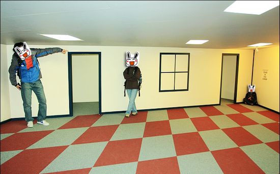 這間房間從外面看是完全正常的,但是房間內(nèi)部,人在不同的地方,看起來會(huì)變得大小不同。這種視覺技術(shù)被電影《指環(huán)王》用來制作巨人和小矮人。