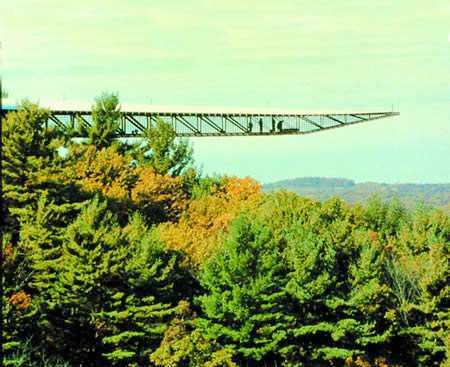 “巖上之屋”出自小亞歷克斯·喬丹(Alex Jordan)之手,于1959年首次對外開放。從建筑學(xué)的角度來說,這個位于巖石之上的觀景臺是由獨特的房間、街道、花園和商店構(gòu)成的一個聯(lián)合體!皫r上之屋”坐落于美國威斯康星州斯普林格林,是當?shù)刈顬橹穆糜尉包c之一。它的“無邊室”在山谷上方延伸數(shù)百英尺,2000多個手工窗戶排成一線,煞是壯觀。最值得一提的是,“無邊室”下方?jīng)]有任何支撐。