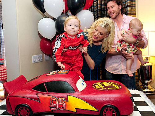 TORI SPELLING和她老公Dean McDermott 為兒子Liam的兩歲生日特意定做了一個汽車主題的蛋糕。而這個創(chuàng)意,大約只是為了能夠贏過他們之前的一個超級英雄主題的甜點(diǎn)吧……