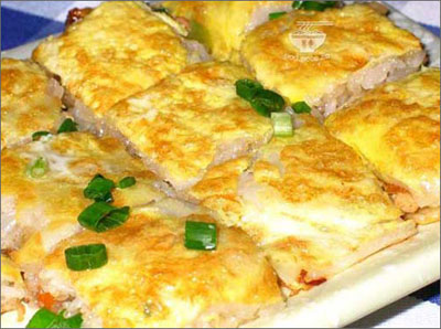 豆皮本是湖北農(nóng)村的鄉(xiāng)土風味小吃,制法是將綠豆、大米混合磨漿,在鍋里攤成薄皮,內(nèi)包煮熟的糯米、肉丁等餡料,用油煎好,口感纏綿,是武漢人早餐的主打食品之一。