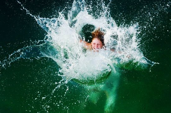 7月3日,奧地利薩爾斯堡壘省,皮亞跳進(jìn)安肯的小湖享受湖水的清涼。