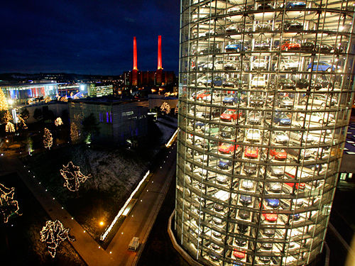 大眾汽車(chē)公司以汽車(chē)為主題的游樂(lè)園——大眾汽車(chē)城 (Autostadt),包括一個(gè)汽車(chē)博物館,駕駛演習(xí)場(chǎng),供參觀的汽車(chē)工廠和這兩座20層的立體車(chē)庫(kù)——“汽車(chē)筒倉(cāng)”。