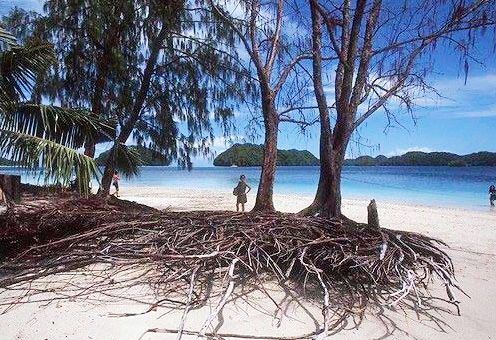 在帕勞,有幾個(gè)在別處不可能見到的浮潛奇觀:玫瑰花瓣一樣的暗紅色硬珊瑚鋪滿海底的一座山坡,無數(shù)的彩色小魚在其中自由自在地游來游去。