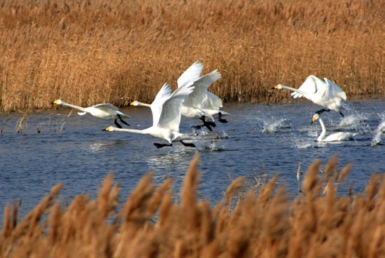 黃河三角洲,以山東省東營市墾利縣寧海為軸點,北起套爾河口,南至淄脈河口,向東撒開的扇狀地形,海拔高程低于15米,面積達5450平方公里。三角洲屬溫帶季風型大陸性氣候,四季分明,光照充足,區(qū)內自然資源豐富。1991年時在此設立了自然保護區(qū),并于1992年晉升為國家級自然保護區(qū),以保護黃河口原生濕地生態(tài)系統和丹頂鶴、白頭鶴等珍稀瀕危鳥類為主體。