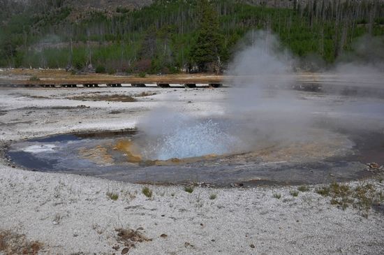 黃石公園的熱噴泉為世界之最,人們統(tǒng)計出有1萬多處溫泉、泥泉和300多個定時噴發(fā)的間歇泉!尤其是間歇泉,更是黃石的驕傲。因?yàn)槿澜缙渌胤剿械拈g歇泉加起來,其總數(shù)還不及一個黃石公園來得多。上百個間歇泉噴射著沸騰的水柱,冒著滾滾蒸汽,好似倒轉(zhuǎn)的瀑布,它們從火熱而黑暗的地下世界不時噴涌而出。