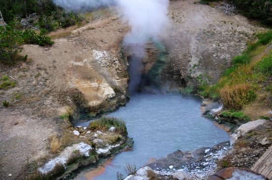 泥沸泉是含有限水分的酸性溫泉,地下的酸氣和微生物將氣孔周圍的巖石分解成黏土和火山一樣的泥漿。如沸騰的水冒著泥泡,當(dāng)泥漿越濃,底下的蒸氣壓力越高,噴發(fā)性就越大。