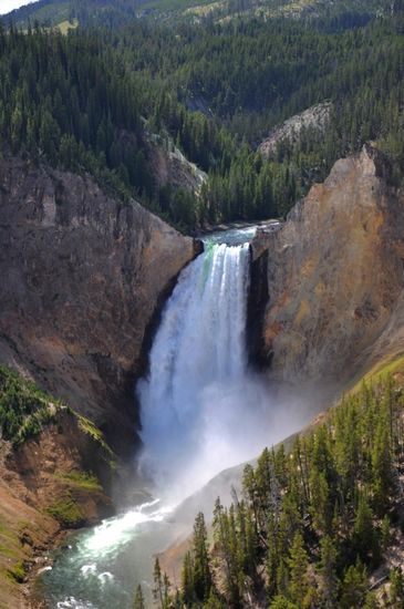 黃石大峽谷位于黃石公園中偏北部, 在釣魚橋和高塔之間。由黃石湖流出的湖水在流經(jīng)約38公里處形成的險峻地帶, 稱為黃石大峽谷。當(dāng)黃石河匯集眾多支流的力量,勇不可當(dāng)?shù)仄茙r而去,公園北部堅硬的火山巖也被沖刷出一道長約38公里、深約250米的大峽谷。
