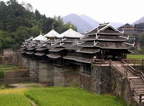 黎平肇興侗寨位于貴州省黎平縣東南部,地勢處于兩座山脈之間的谷地,村寨呈船形狀。就侗族南部而言,肇興侗寨是屈指一數(shù)的,有“千家肇洞”和“侗鄉(xiāng)第一寨”之美譽。肇興侗寨四面環(huán)山,寨子建于山中盆地,一條小河穿寨而過。寨中房屋為干欄式吊腳樓,鱗次櫛比,錯落有致,全部用杉木建造,硬山頂覆小青瓦,古樸實用。