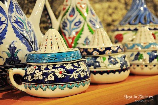 據(jù)說(shuō)奧斯曼土耳其人認(rèn)為瓷器乃稀世珍品,公元八百一十六年前后,綠色是伊斯蘭教的喜好之色,在很多的建筑上我們都能看到有綠色的穹頂或裝飾。但到了14世紀(jì),波斯的蒙古貴族皈依了伊斯蘭教的蘇菲派,由于蘇菲派本身很喜歡藍(lán)色,又認(rèn)為白色是代表真主的圣潔,所以在接受皈依的同時(shí),也接受了代表蒙古民族的藍(lán)色。此后,藍(lán)色成為奧斯曼皇族的崇尚之色。當(dāng)看到了產(chǎn)自中國(guó)的大量精美的青花瓷器后,土耳其人開(kāi)始學(xué)習(xí)并仿制制作起來(lái)。