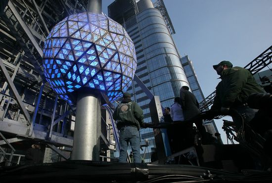 紐約時(shí)代廣場,重達(dá)11875磅的水晶球從141英尺的旗桿降下,標(biāo)志2011年的到來。