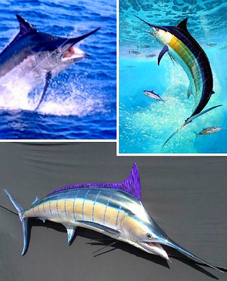 藍槍魚是一種最大的魚類,外觀非常出眾,它的上側(cè)(背部)呈藍色,可以起到保護色作用,防止從它上方游過的較小獵物發(fā)現(xiàn)它。雌性藍槍魚的體重往往比雄性更重,有時會比雄性重很多:最大的雌性,體重可達4000磅(1800公斤),從嘴巴末端到尾鰭長達13英尺(4米)。