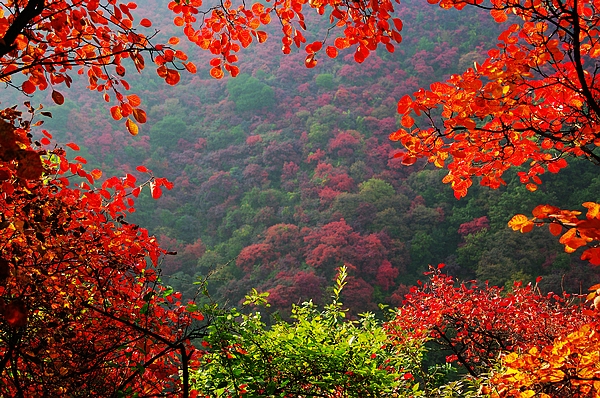 實景三門峽甘山公園紅葉圖片美景
