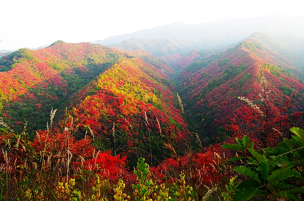 實(shí)景三門(mén)峽甘山公園紅葉圖片美景