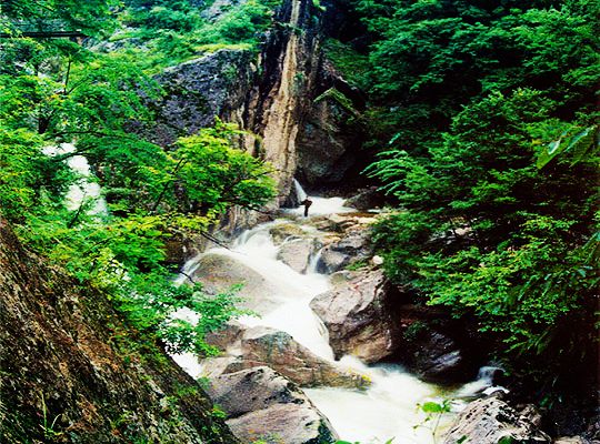 龍峪灣地處亞熱帶與溫暖帶的過(guò)度地帶,境內(nèi)山巍、水澈、峰奇、石怪、洞幽、瀑壯泉清,森林茂密、植被原始、奇峰林立、古木參天,有黑龍?zhí)、白馬潭、仙人瀑布、彩虹瀑布、青龍瀑布;仙人洞、藏兵洞、貞女洞、帽盔洞等。