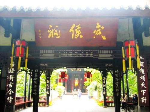 伴月臺,高數(shù)丈,臺下為老龍洞,洞門兩側(cè)石刻“自古宇廟垂名布衣有幾,能使山川生色陋室何妨”對聯(lián)。武侯祠右側(cè)有清同治年間新增設(shè)的庭院,這是為紀念劉備三顧茅廬而特意修建的。庭院后面建有三顧堂,內(nèi)有劉備、諸葛亮大型塑像。
