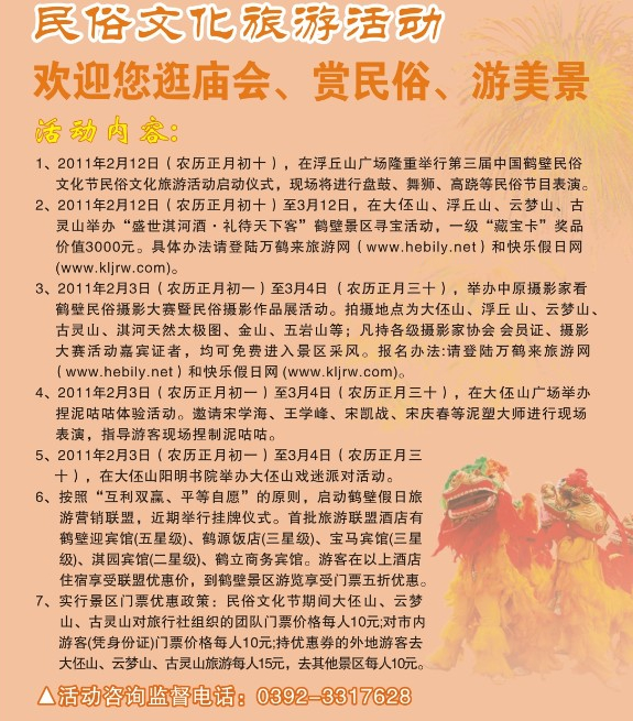 第三屆中國鶴壁民俗文化節(jié)旅游活動一覽表