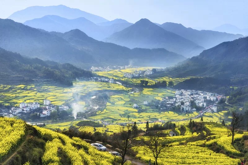 作為老牌的婺源油菜花觀賞地,在全國乃至世界都有很高的知名度,一定有它獨特的魅力。江嶺以“十萬畝梯田花海”、“中國四大花海之一”著稱,站在山頂觀景臺上,入目所及的是在群山的擁抱中如鏈似帶、層層疊疊、高低錯落的油菜花海,蔚為壯觀、氣勢開闊,讓人頓生豪邁之氣,瞬間諸般煩惱拋之腦后,再加上幾點徽派建筑的點綴,如詩如畫,讓人陶醉其中,流連忘返。