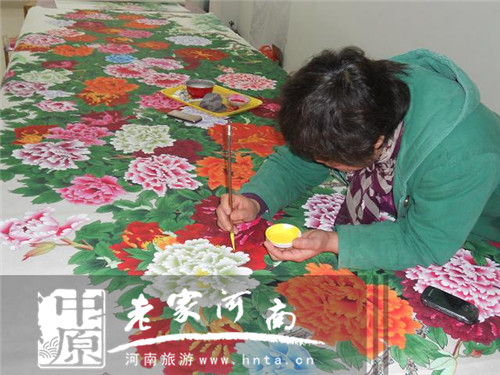 洛陽市孟津縣平樂鎮(zhèn)平樂村地處洛陽漢魏故城遺址,該村大力發(fā)展“平樂牡丹畫”文化產(chǎn)業(yè),成為全國有名的“中國牡丹畫第一村”。該村6000多村民中從事牡丹 畫創(chuàng)作的就有600余人,其中專業(yè)牡丹畫家120多人,全村2010年創(chuàng)作牡丹畫13萬余幅。“平樂農(nóng)民牡丹畫”已成為中原文化的一張名片。