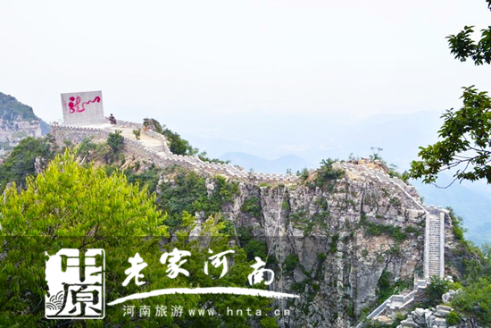 龍脈長城,為趙、魏龍脈長城之遺址,像一條盤旋在太行山脊上的巨龍,橫跨豫、晉兩省,由東北方向的林縣昂首奔來,挾帶著燕趙之地慷慨激烈之氣勢,經(jīng)過趙國宰相藺相如的藺家寨,蟠結(jié)屈曲于侯兆川的轎頂山、鐵打寨;又挾帶著太行向陽山坡華山的淋漓元?dú),昂首奔赴于東南方的趕羊塽、北窯、老祖洞,最后,至天柱關(guān)而止,那高聳入云的天柱雙峰,就是龍脈長城巨大的雙角,本景區(qū)長達(dá)14公里。