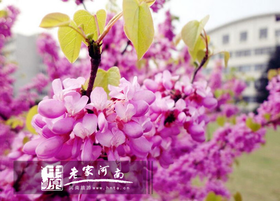 路過紫荊山公園,你一定要進(jìn)去瞅瞅,因?yàn)樽锨G花正在開放。星星點(diǎn)點(diǎn)的花,有的含苞欲放,有的熱烈奔放,點(diǎn)綴在枝條上,別有風(fēng)韻。