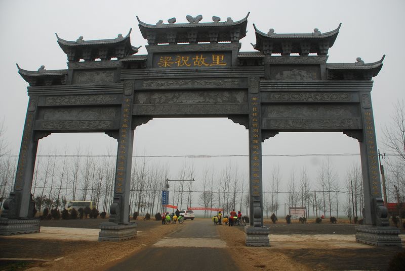 相傳西晉時,在汝南境內的朱莊,祝員外之女祝英臺女扮男裝去紅羅山書院求學,途經曹橋,與從梁崗去紅羅山書院求學的梁山伯相遇。兩人一見如故,義結金蘭,同往求學。二人同窗三載,同植樹,同挑水,同學習,同吃住,情同手足。祝英臺逐漸對梁山伯產生愛慕之情,但梁山伯不知祝英臺是女兒之身。3年后,在梁山伯送祝英臺下山時,在十八里鄉(xiāng)路上,英臺對山伯百般提醒,吐露愛慕之情,山伯卻渾然不覺。英臺無奈,只好以為其妹九紅提親之名,約山伯到祝家樓臺相會。后經師娘挑明,山伯前往求婚,卻被告知英臺已被強許馬家。山伯歸家后一病不起,百藥無治。臨終前,山伯囑咐家人,將其葬在馬鄉(xiāng)北官道旁,希望能看到祝英臺出嫁時的情形。祝英臺被逼出嫁的那天,花轎行至官道旁梁山伯墓前,英臺下轎哭祭山伯,撞柳殉情。因被馬家迎娶并未到家,不能入馬家祖墳。而對祝家來說,英臺是已嫁出去的閨女,又因她不守“三從四德”,而不能埋回祝家祖墳,人們就把她埋在與梁山伯隔路相望的路東,之后,二人魂魄化為蝴蝶,比翼雙飛。于是就有了民謠:梁山伯、祝英臺,埋在馬鄉(xiāng)路兩沿兒。