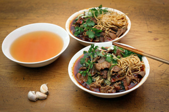 鄧州街頭常賣的小吃就是窩子面,而且是用挑子擔著賣的。鄧州窩子面原為武漢熱干面,傳入鄧州后經(jīng)過改良加入了綠豆芽,牛肉丁,澆上牛油辣椒,香辣無比。