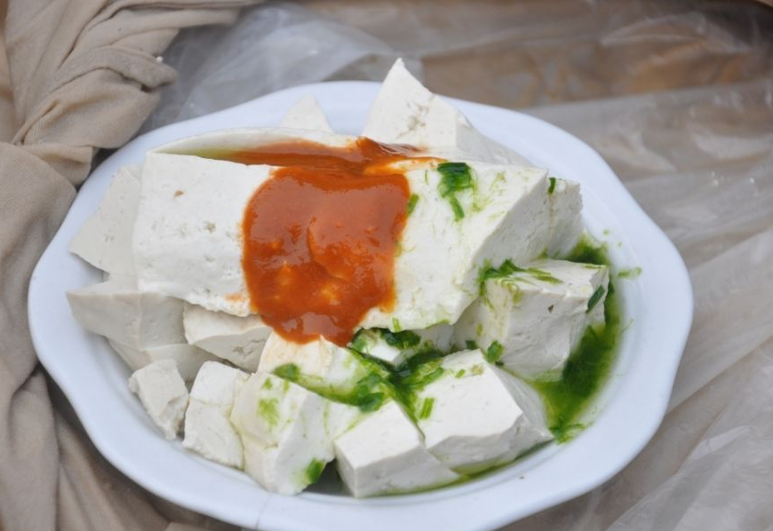吃熱豆腐必須配辣椒汁,否則淡而無味。熱豆腐制作好之后,切成兩厘米見方的小塊,再配上上等的辣椒汁,用筷子夾一塊熱豆腐放入嘴中,滿口生津,清香可口,回味無 窮,吃過熱豆腐的人,絕對想吃下次。