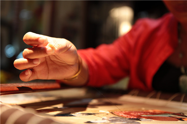 以人物刻畫為主的汴繡,沿用了古老的上繃方法,大多以長卷為主,上繃鏗鏘有力,循環(huán)纏繞。