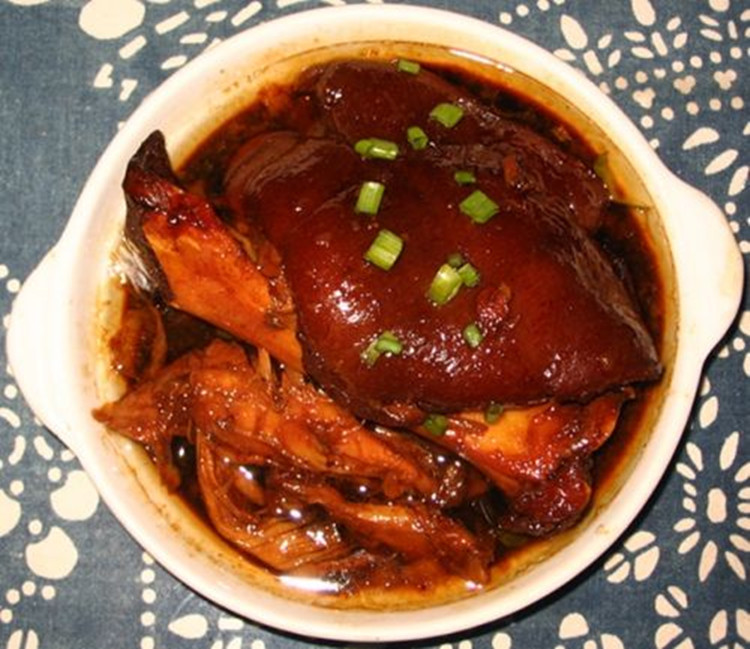 宋朝真宗皇帝登基不久,就御駕東巡。那一日,來(lái)至柘城太清宮時(shí),太陽(yáng)已經(jīng)西沉,于是命在此駐蹕。用膳之前,他告訴隨人:“看一看此地有什么名吃沒(méi)有,可選來(lái)讓朕品嘗品嘗。”隨人答是,走出去還未及向人打聽(tīng),就感到有一股特別的香味鉆進(jìn)了鼻孔,于是順著這股香味兒走去,直走到一家姓李的鹵菜店,一看賣(mài)的全是鹵肘子。這鹵肘子做得色美味香,他將冒著熱氣的鹵肘子買(mǎi)下,讓店家包好拿著隨自己返回。見(jiàn)到皇上,呈上鹵肘子;噬弦(jiàn)這鹵肘子色味不凡,問(wèn)店家:“你家鹵肘子店有多少年了?”店家答:“本是祖?zhèn)鳎陻?shù)多了,在唐朝時(shí)就經(jīng)營(yíng)著。”皇上問(wèn):“有名氣沒(méi)有?”店家答:“小人不敢說(shuō)名氣多么大,反正周?chē)侔牙镟l(xiāng)里城里都知道,官府和民間的人經(jīng)常來(lái)買(mǎi),他們都夸味道不錯(cuò)。不瞞皇上,俺李家的風(fēng)味鹵肘子,其配方是有來(lái)由的——李家先人于唐朝中期在宮中御膳房當(dāng)廚工,主要是做鹵肘子,年老時(shí)辭職回到老家開(kāi)起一個(gè)鹵肘子店,一干就響了起來(lái),也就一代一代傳下來(lái)了。”真宗皇帝一聽(tīng)大喜,便開(kāi)始品嘗起這李家風(fēng)味鹵肘子。食后對(duì)其美味贊不絕口,從此以后,李家風(fēng)味鹵肘子的名聲更大了。