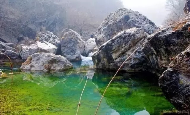 輝溝冬季的龍浴湖,擁有河南罕見的冰掛奇觀,層層疊疊高大尖銳,如同冰雪之劍從山頂直插入山底,像海浪般一排排并列,視覺沖擊力極強。