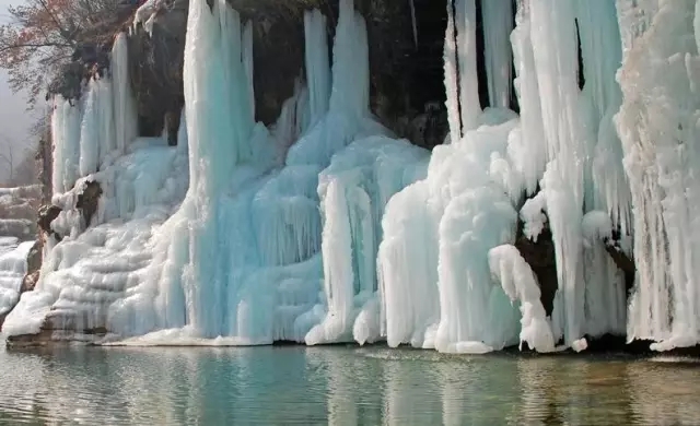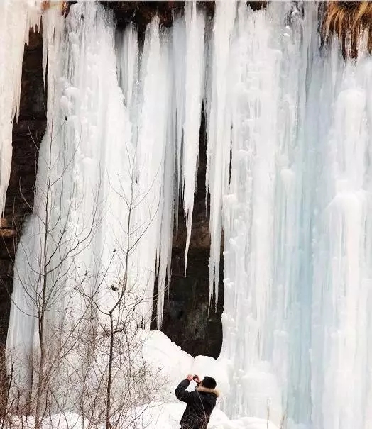 山泉從巖石縫隙中流下,瞬間結(jié)成了冰,不斷涌出的泉水又澆筑在冰凌上,逐漸形成了冰掛。