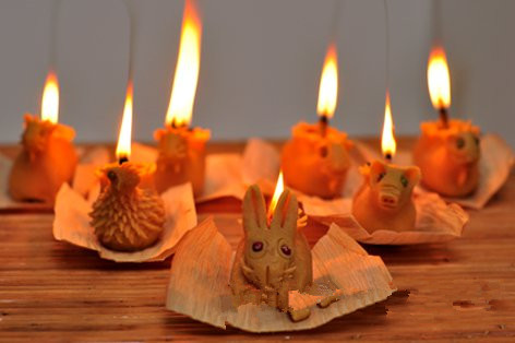 面燈還可以做成各種動物的形狀。常見的有狗、雞、魚、龍、豬等。不同的動物面燈要擺放在不同的地方。點亮的狗形面燈要放在家門口,讓它保家護院;點亮的雞形面燈放在雞柵邊,祝愿家雞們不生病、多下蛋;魚燈要放在水缸上,祝愿合家幸福、財源順水來;豬燈被放在豬圈旁,祝愿家畜興旺;龍燈要放在糧食囤上,祝愿新的一年五谷豐登。