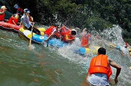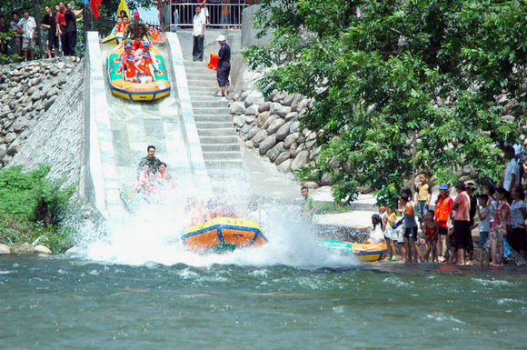 白河第一漂位于伏牛山南麓,白河上游的南召縣喬端鎮(zhèn)。漂流全程為10公里,大自然的鬼斧神工使河道急緩交錯(cuò),深淺不一,曲折的河流中,游客可以搏浪闖灘,或游水嬉鬧,在漂流中體會(huì)返璞歸真、回歸自然的樂趣。沿河兩岸延綿、蔥綠的原始森林更是天然的氧吧,讓你在游玩中不知不覺的健康身心,讓呼吸更清新舒暢。河道5公里處最新打造的百米寬“水簾”,讓您在炎炎夏日里好好過把清涼癮!