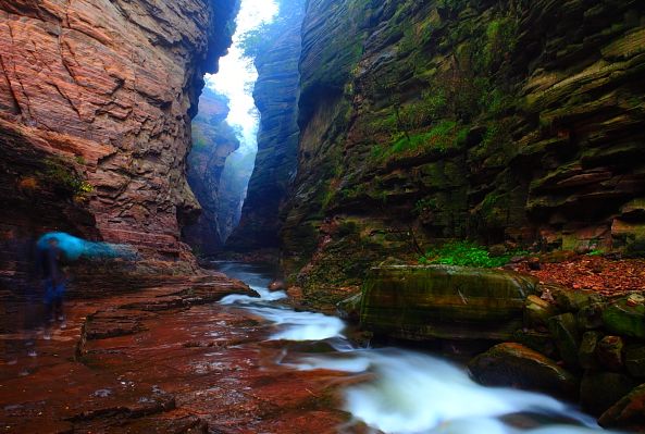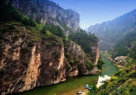 龍?zhí)洞髰{谷景區(qū)位于洛陽(yáng)市新安縣北部,是一條由紫紅色石英砂巖經(jīng)流水追蹤下切形成的U型峽谷,全長(zhǎng)12公里。龍?zhí)洞髰{谷是河南最有名的峽谷,是高峽甕谷、山崩地裂的奇觀,世間少有的“古海洋天然博物館”。