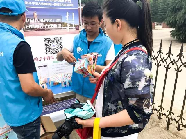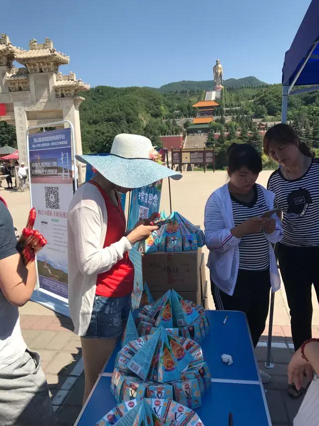 端午節(jié)期間,堯山的各個(gè)景區(qū)設(shè)置的思念V粽領(lǐng)取點(diǎn),點(diǎn)隨處都可以看到為游客免費(fèi)發(fā)放粽子的工作人員。掃碼購票領(lǐng)V粽是堯山的端午節(jié)標(biāo)志。