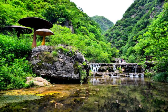雙龍灣因屹立著大龍頭、小龍頭兩座奇峰而得名。這里風(fēng)光秀美,既有北方山水的剛毅雄渾,又有南方水鄉(xiāng)的婉約風(fēng)韻,洛水兩岸山色樹(shù)影、碧水藍(lán)天,勾勒出一軸醉人的山水畫(huà)卷。處處泉水叮咚、溪流潺潺,5月的天氣來(lái)這里,清涼透徹!