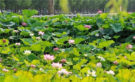 夏季荷花開(kāi)放,開(kāi)元湖也多了幾分情調(diào),位于城市中心,到了六七月份,那清涼的荷塘毫不收斂地吸引路人目光。這里的蓮,美在溫婉,與湖邊的高樓形成對(duì)比,增添了幾分趣味。不僅有蓮,湖內(nèi)還養(yǎng)了觀賞錦鯉,白天觀魚(yú)賞花,夜晚繞著湖散步,還能聞到水中花朵的清香。