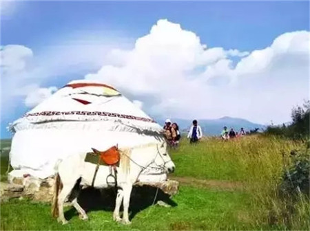 草原上綠草豐茂、坦蕩無際,加之駿馬成群,盡現(xiàn)北國風(fēng)光之壯美。在草原上還有騎馬、射箭、攀巖、索道等幾十種項目供游客參與,可以盡情體驗游牧民族的獨特風(fēng)情。