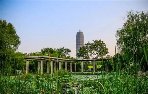 鄭東新區(qū)濕地公園地處繁華的CBD,離如意湖不遠,在CBD外環(huán)和南北運河交匯處。站在濕地公園的外圍遠遠看去,它包圍在層層蘆葦和綠樹叢中,顯得內(nèi)斂而低調(diào),似乎只是城市區(qū)高層建筑中的一塊普通綠化地,不見有什么特別之處,走進其中,卻發(fā)現(xiàn)別有洞天,充滿野趣的靈性。