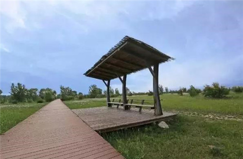 選擇一條線路進入原生態(tài)的黃河濕地腹地,一條彎曲的長廊時隱時現(xiàn),除了有水的地方有欄桿外,其余長廊都沒有護欄,不時有小草的葉子從長廊步道縫隙中露頭,輕觸人腿。整個長廊沒有刻意去雕飾,兩側(cè)是一眼望不到邊的青草瘋長的灘地,極盡自然。