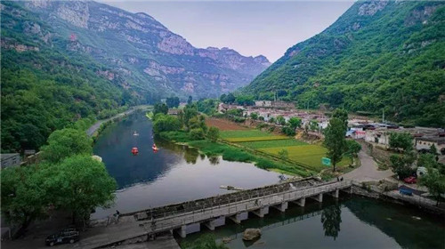 丹河峽谷山水風(fēng)光雄偉壯美,是以“古、幽、秀、奇、素”而著稱的天然休閑度假區(qū)。丹河蜿蜒曲折貫穿全境,丹河水傾碧吐玉、翠環(huán)百折,栲栳山雄奇險(xiǎn)峻,登山縱覽,整個(gè)丹河盡收眼底,周圍群山成環(huán)拱之勢,蔚為壯觀。丹河水傾碧吐玉,迤邐屏天,至此或垂釣河畔,或嬉戲水中,抑或乘皮筏順流漂浮,盡享“從流漂蕩,任意東西”的快感。