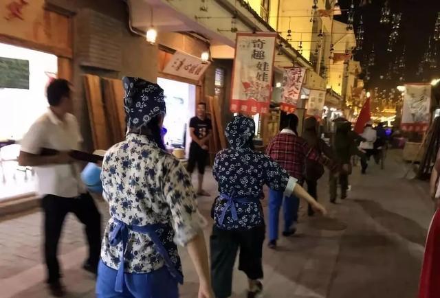 每逢周五、周六、周日,整條步行街就會(huì)有流動(dòng)的節(jié)目表演,從充滿懷舊風(fēng)情的大上海舞蹈,到時(shí)代氣息滿滿的忠字舞,再到滑稽可笑的民國(guó)小品,總能讓游客們一路歡笑。